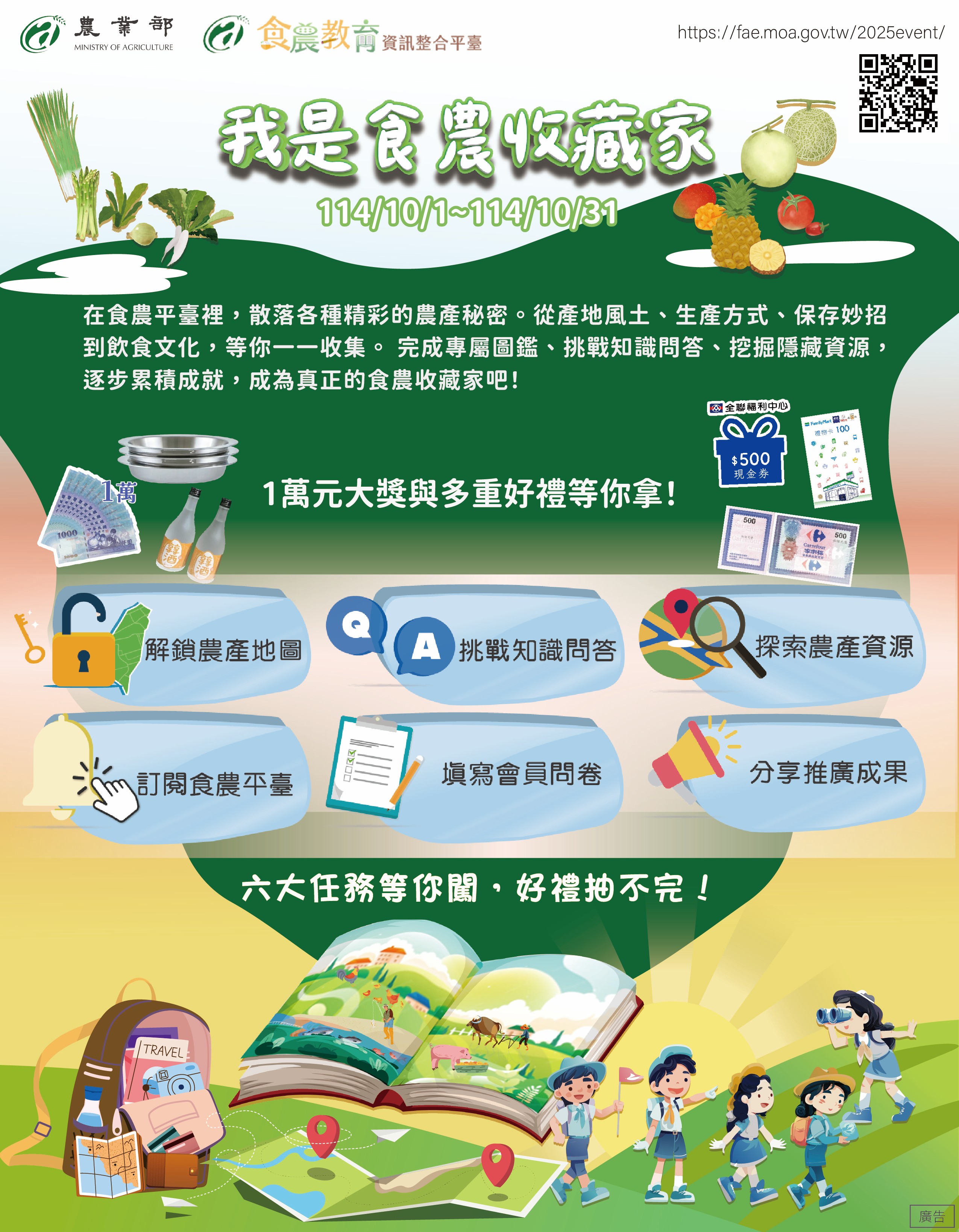 農業部食農教育資訊整合平臺訂於114年10月1日至 10月31日辦理「我是食農收藏家」推廣活動