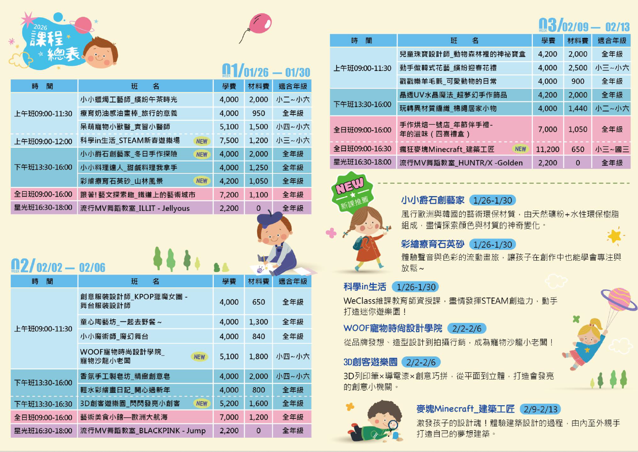 (1)招生對象:國小一年級至國小六年級學生。