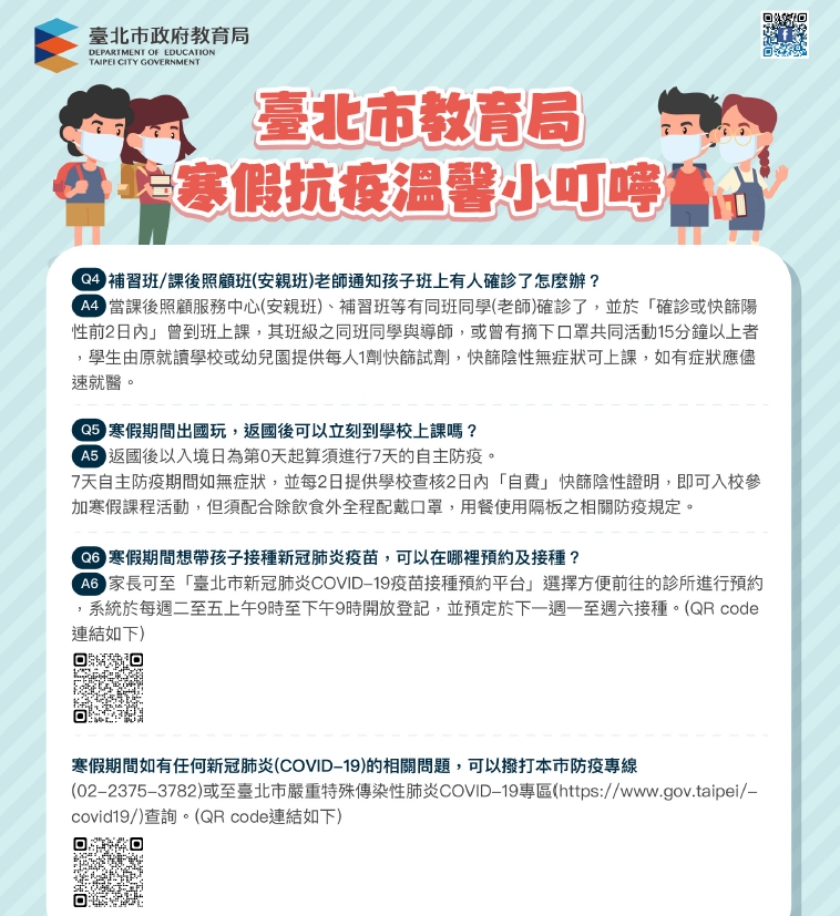 轉達 臺北市教育局寒假抗疫溫馨小叮嚀宣導海報: