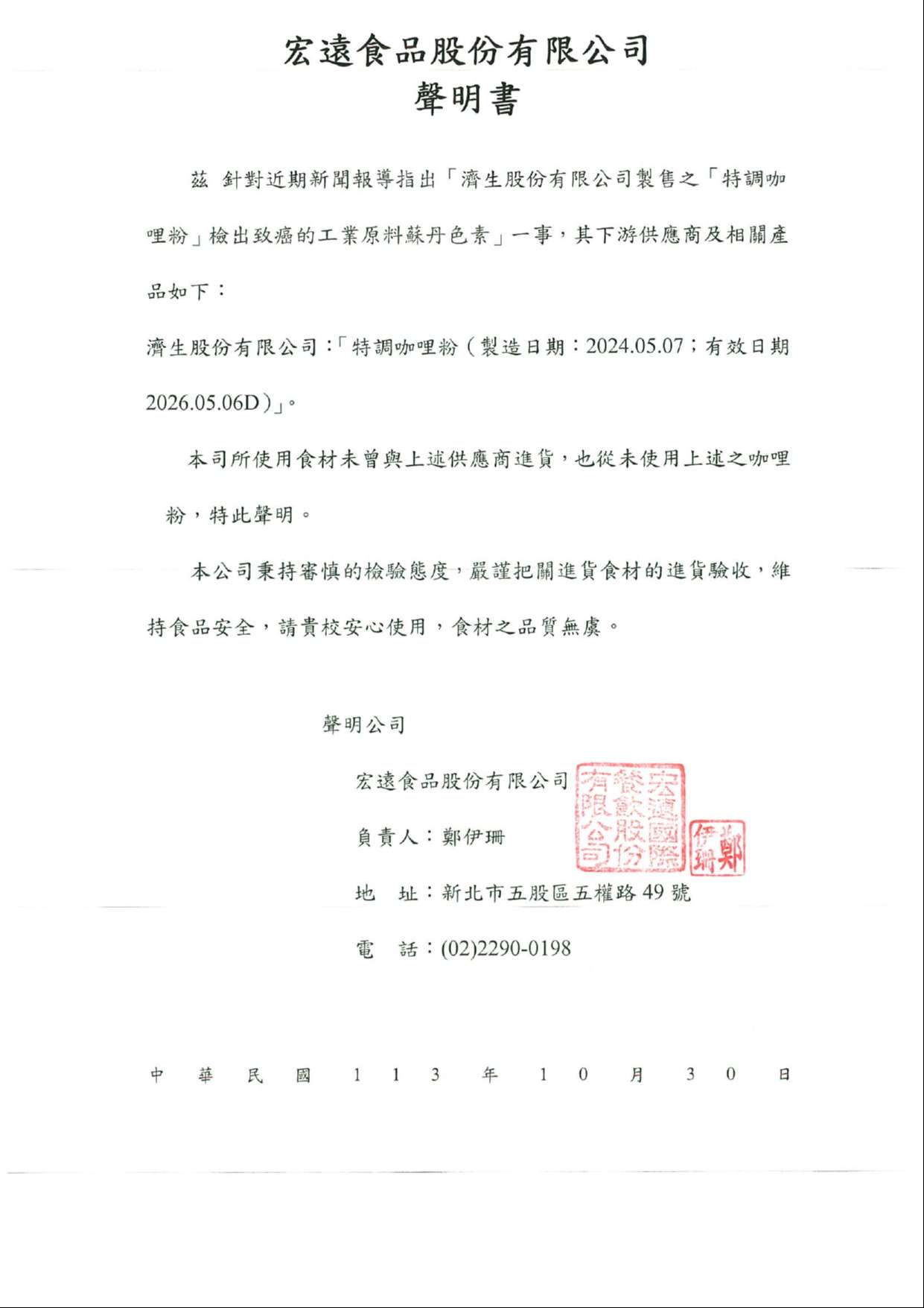 力行群組午餐所使用咖哩粉廠牌為小磨坊,並未使用新聞報導之不合格咖哩粉,請家長放心。