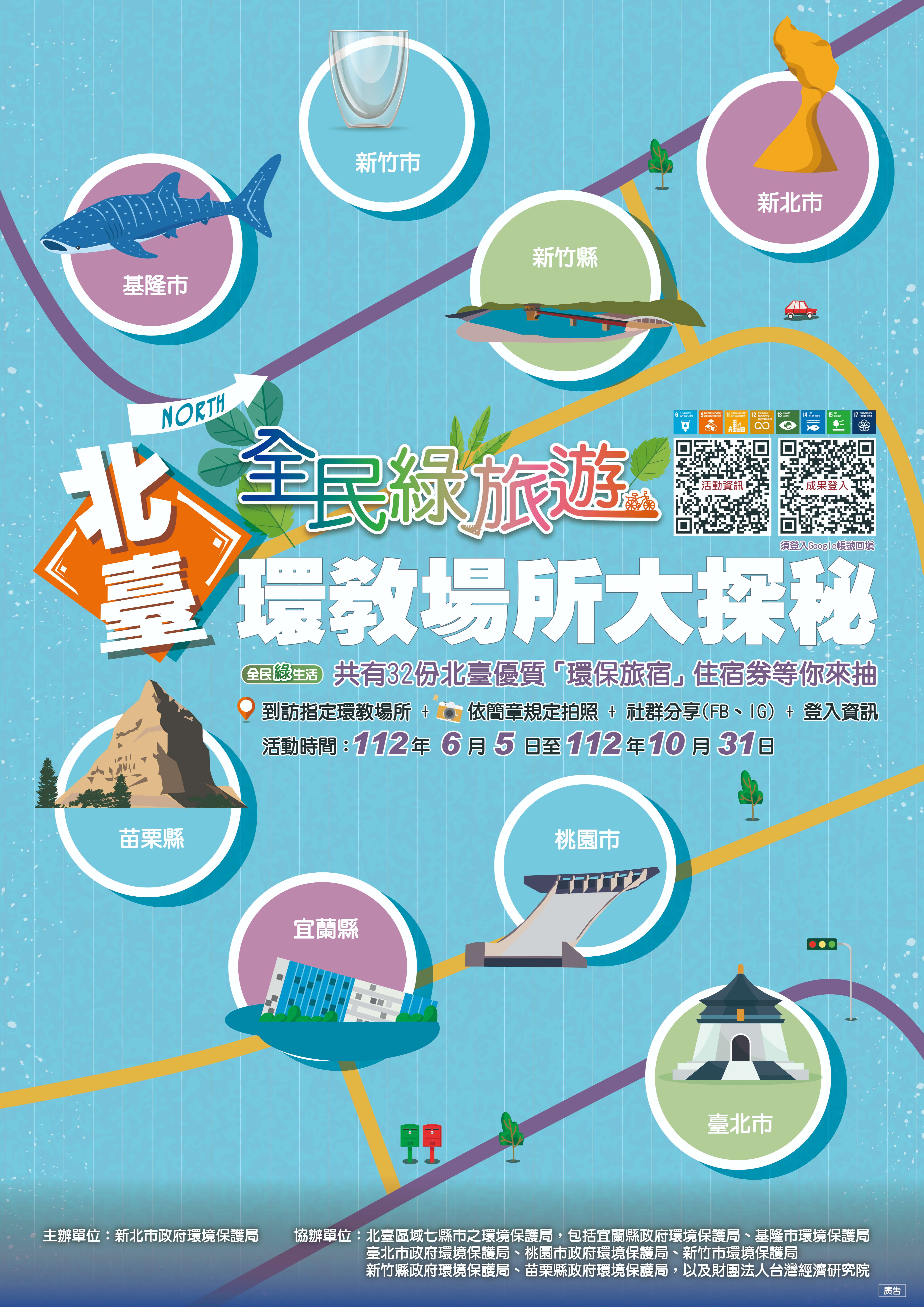 一、為鼓勵全民綠色旅遊,並讓親子族群於暑假期間至北臺優 質之環境教育設施場所共遊學習,北臺八縣市共同辦理旨 揭活動,活動重點說明如下: