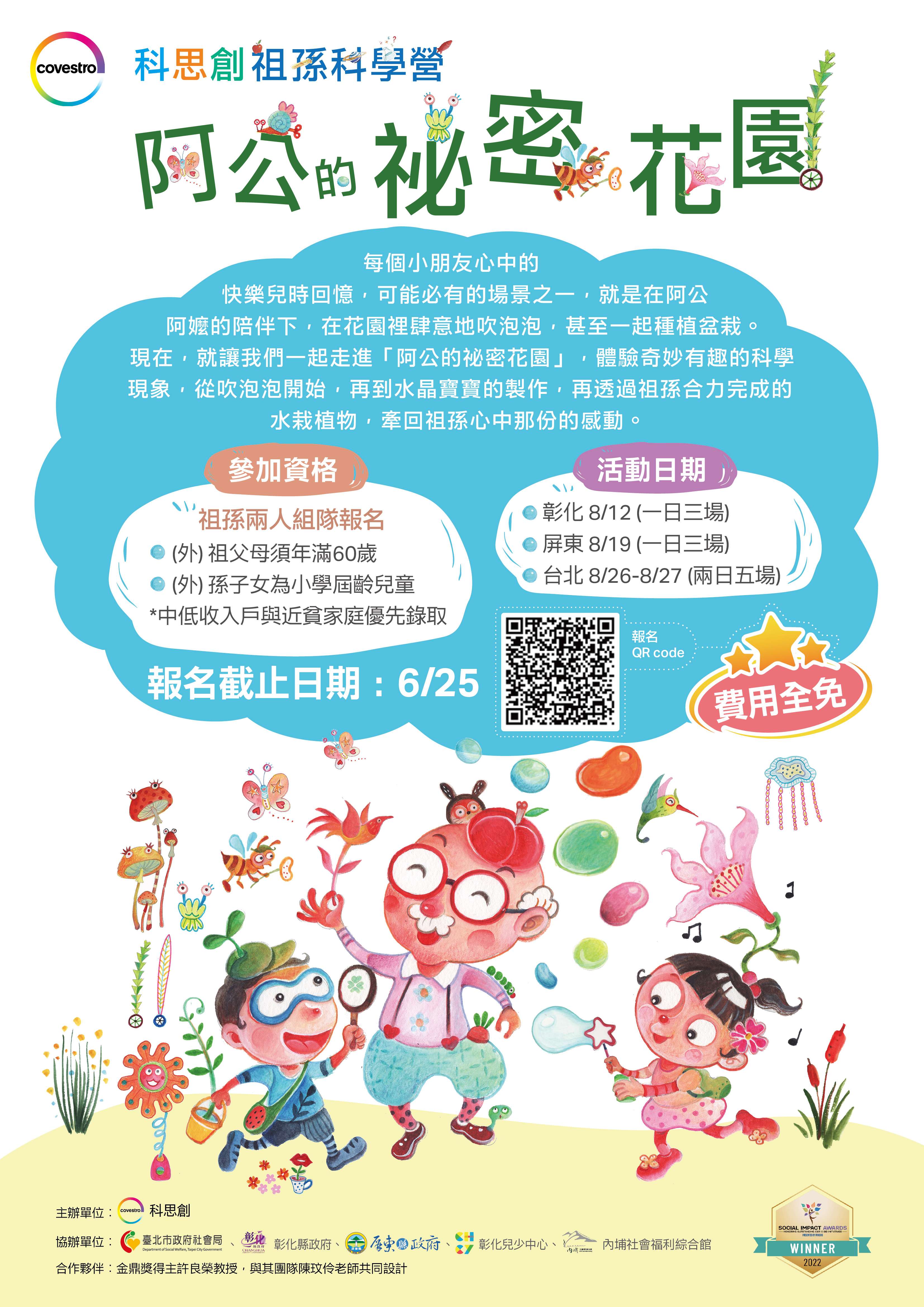 (五)活動內容:將由一位老師主講,並有隨堂志工從旁協助,搭配圖示化實驗步驟手冊,帶領祖孫體驗科學實驗(吹泡泡、水晶寶寶製作)。