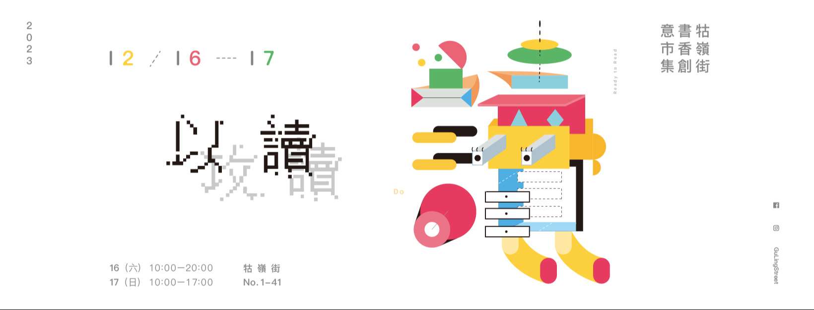 2023第23屆牯嶺街書香創意市集活動於112年12月16日(星期六)上午10時至晚上8時、12月17日(星期日)上午10時至下午5時假牯嶺街(南海路至寧波西街路段)舉辦,開幕式活動為12月16日(星期六)上午11時。