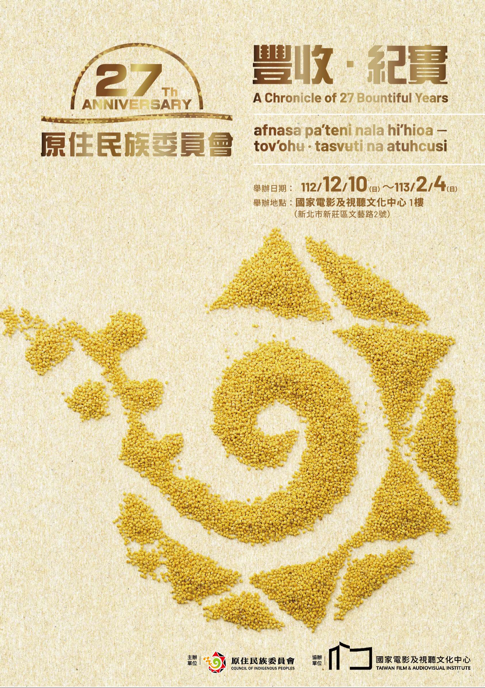 三、為促進主流社會對原住民族歷史脈絡與原權之認識,以及 回顧本會成立至今完成之各項重大施政里程碑及響應國際人權日之價值理念,本會特辦理「豐收‧紀實-原住民族 委員會成立27週年」特展,時間及地點如下: