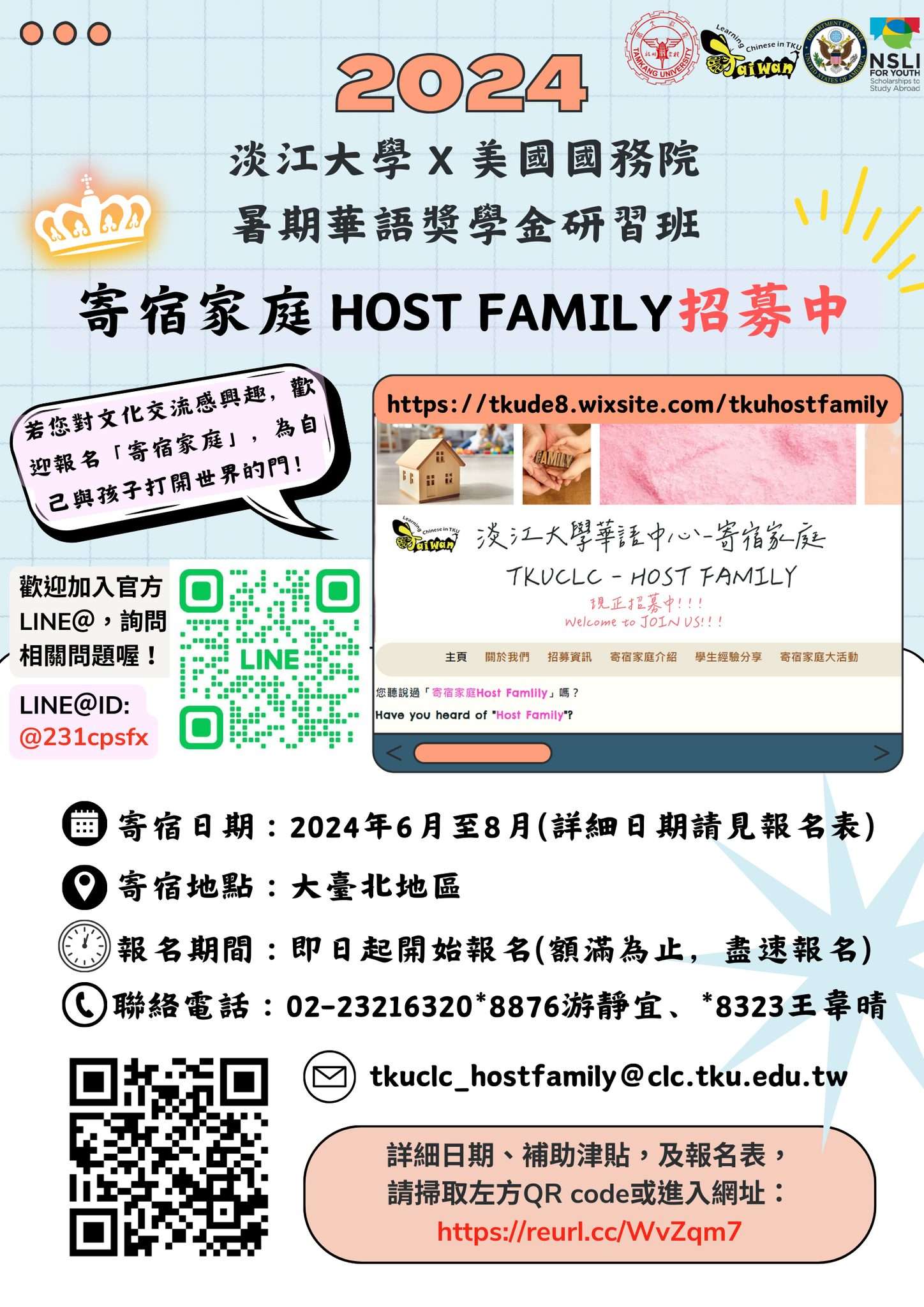 欲瞭解更多寄宿家庭詳細內容,請參考附件或至官方網站(網址:https://tkude8.wixsite.com/tkuhostfamily)查詢。