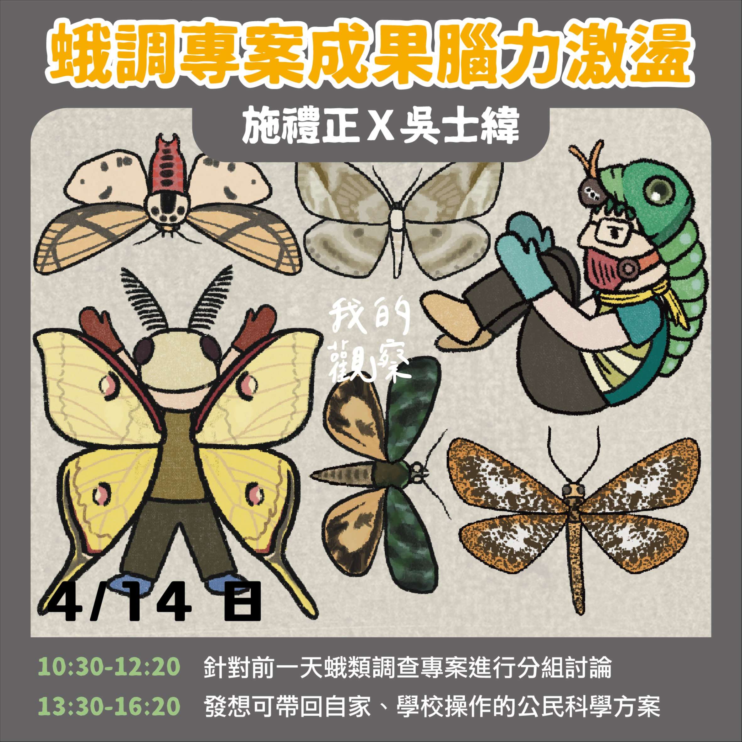 2、課程簡介:結合FB社群與「iNaturalist」專案實作分 享、專案探討—「慕光之城:臺灣飛蛾紀錄網」, 臺北暗夜之美—蛾類調查野外實習。