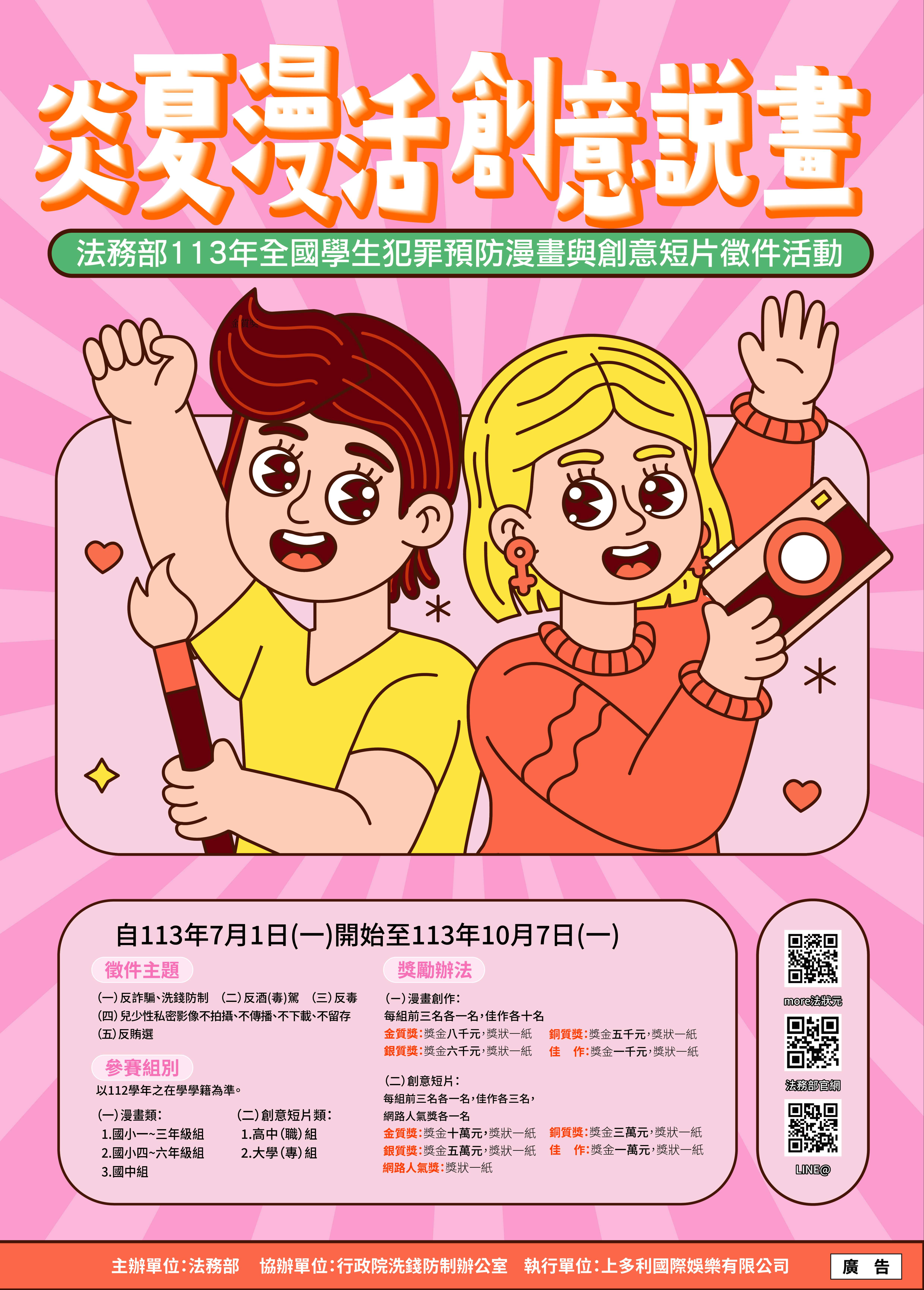 法務部辦理「炎夏『漫』活,創意說『畫』」113年 全國學生犯罪預防漫畫與創意短片徵件活動辦法