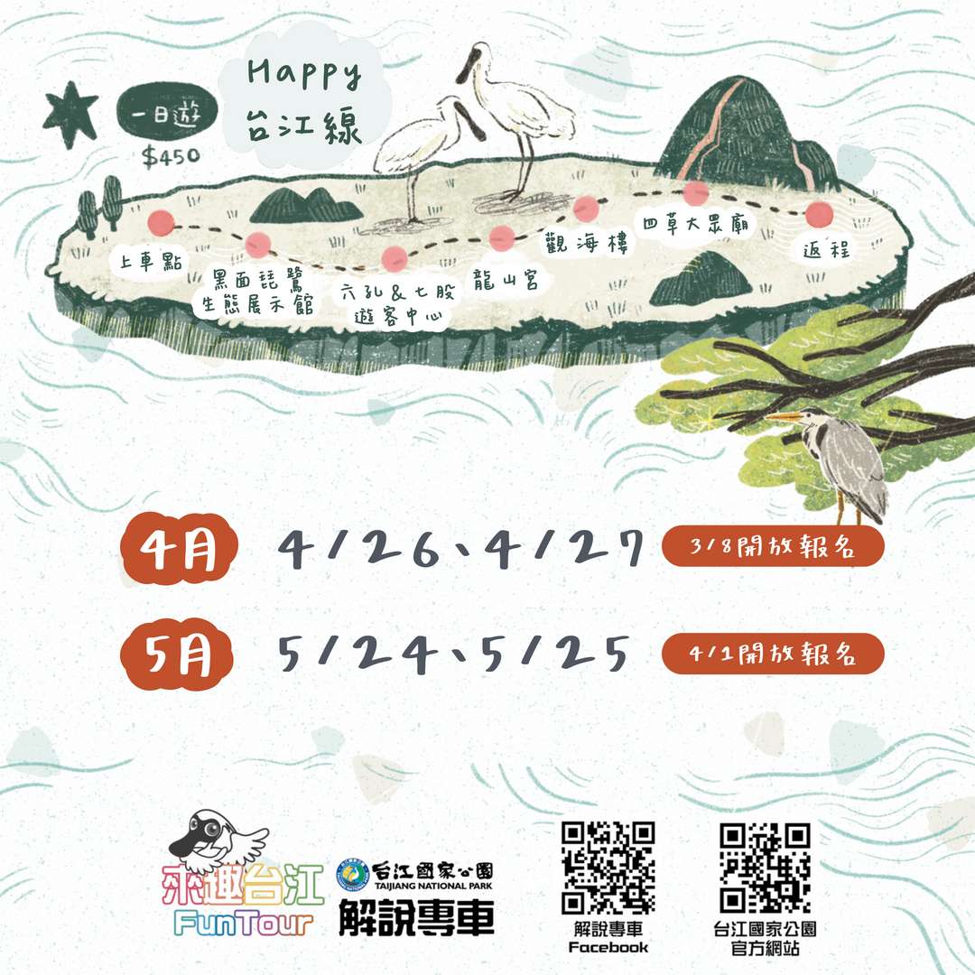一、奉台北市府交下內政部國家公園署台江國家公園管理處114年3 月12日江企字第1141001883號函辦理。 二、檢附內政部國家公園署台江國家公園管理處原函、活動海 報各1份。
